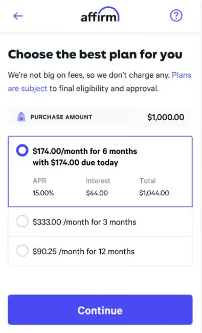 Affirm doesn't charge late fees or hidden fees of any kind, ever.