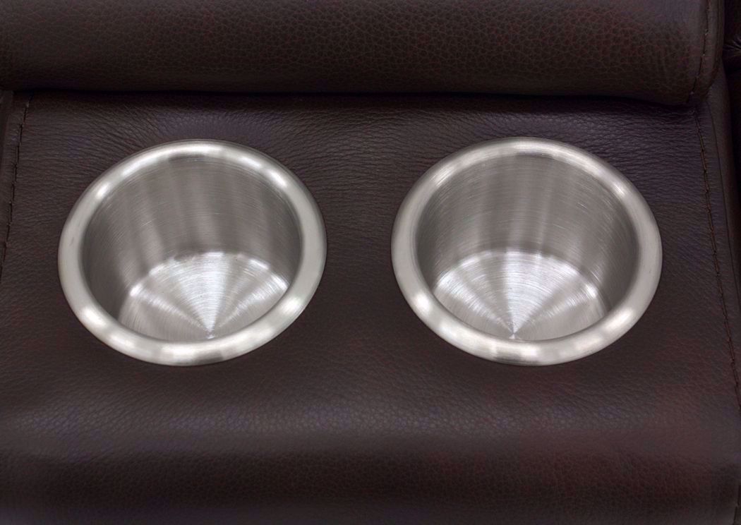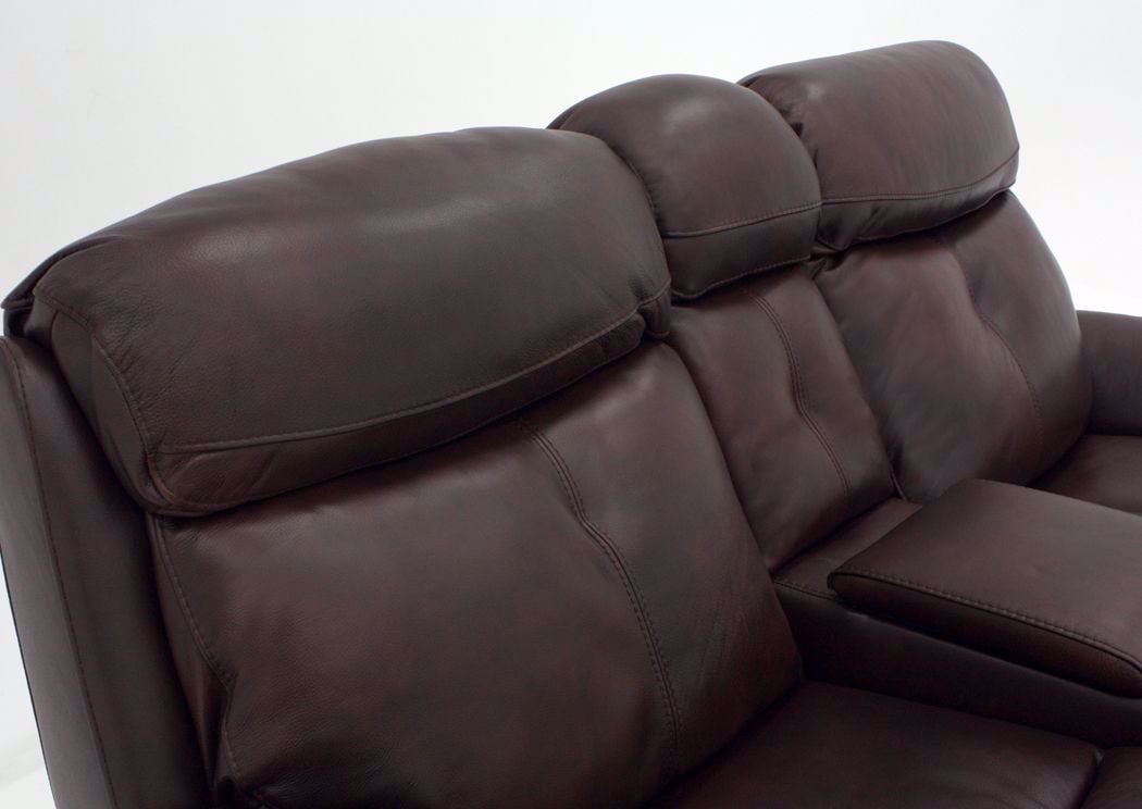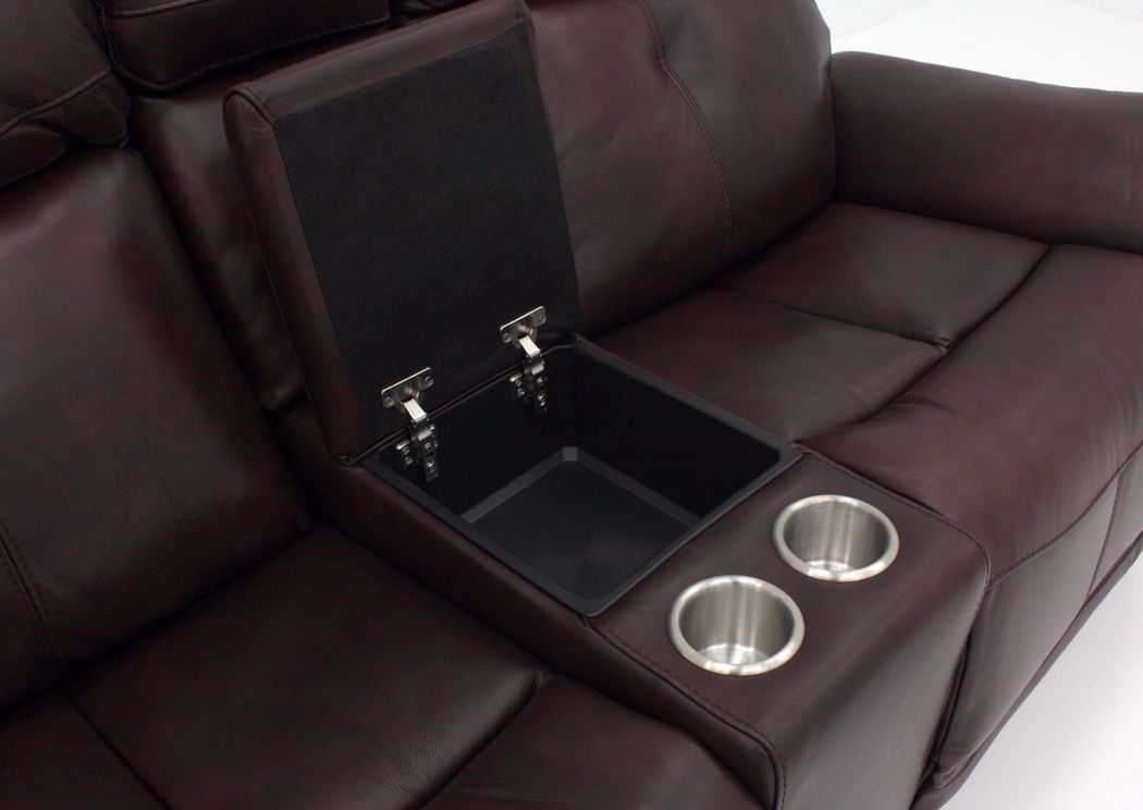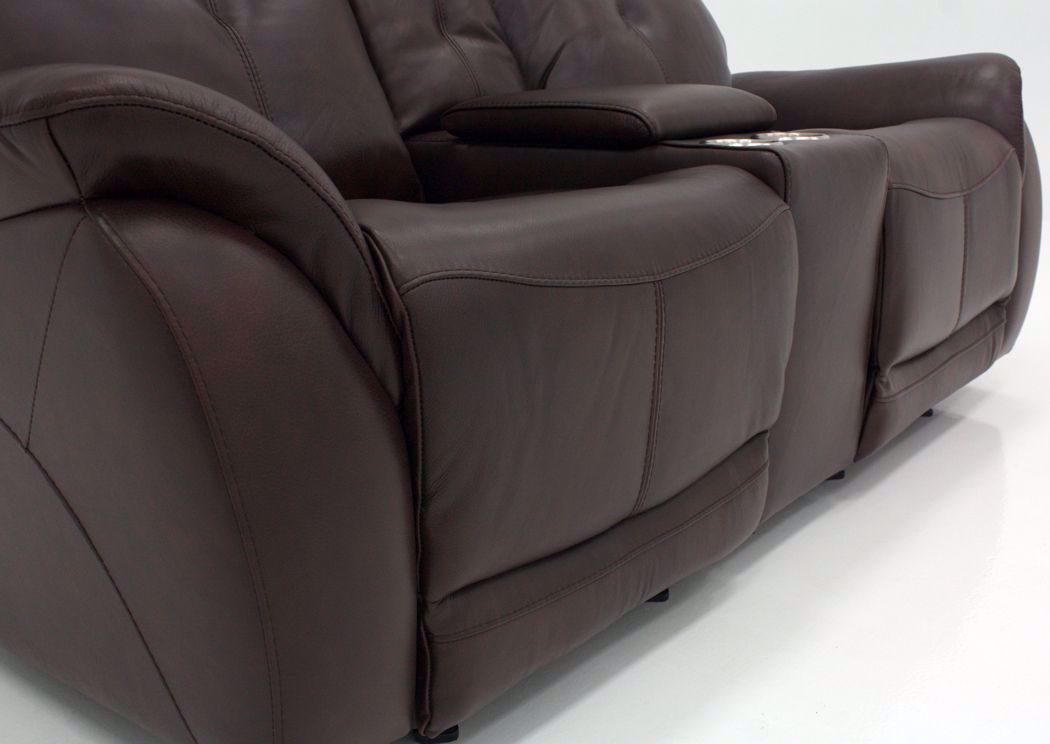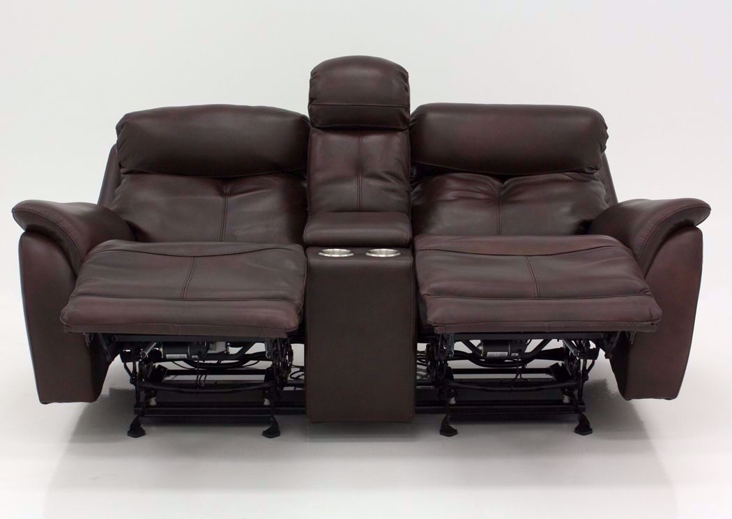 The Alpha POWER Glider Reclining Loveseat by K-Motion blends style and function to create a haven for relaxation. Comfort features include contour seating and pillow arms along with a brown top grain leather match upholstery. Other features include adjustable headrests, USB ports and pad-over chaise reclining all at the TOUCH OF A BUTTON! Plus, there is a convenient storage console with cup holders.