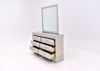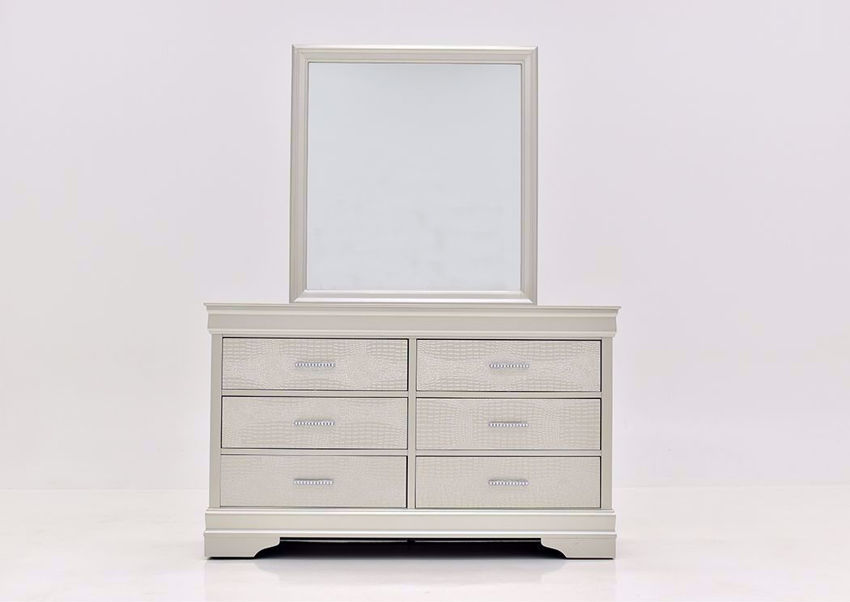 Bring elegance, luxurious comfort and lots of storage options into your bedroom with the Amalia Dresser with Mirror by Crown Mark International Furniture. The Amalia Dresser with Mirror is covered in a metallic silver finish that is sophisticated and will complement any color palette. Additional features and chic design elements include 6 spacious drawers and textured drawer fronts. The jewel embellished drawer pulls will add the perfect amount of sparkle and bling to your bedroom suite. Let your style shine with the Amalia Bedroom Collection.