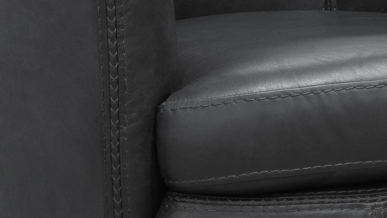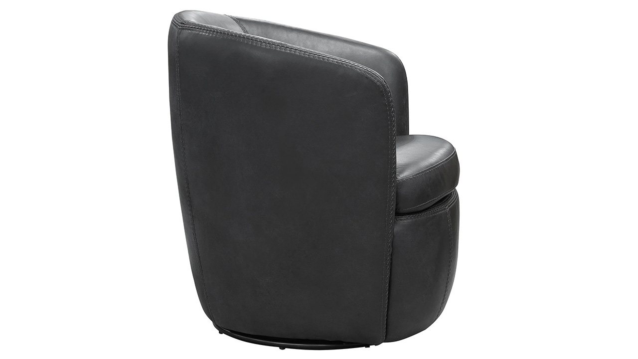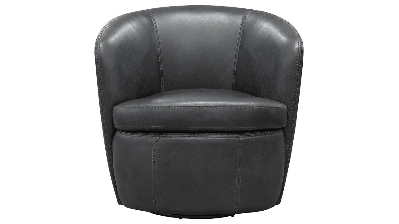Slate Gray 360-degree Swivel Club Chair. 100% Genuine Leather. Hand-Crafted Decorative Stitching 360-Degree Swivel. Contoured Back. Sloped Arms