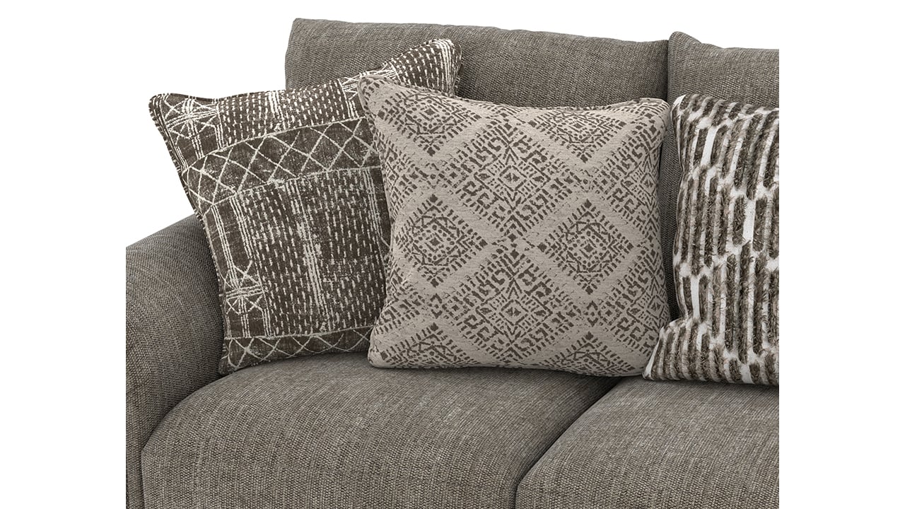 The loveseat brings the same relaxed sophistication in a perfectly proportioned size. With its blend of textured chenille and patterned pillows, it adds warmth and harmony to the seating group.