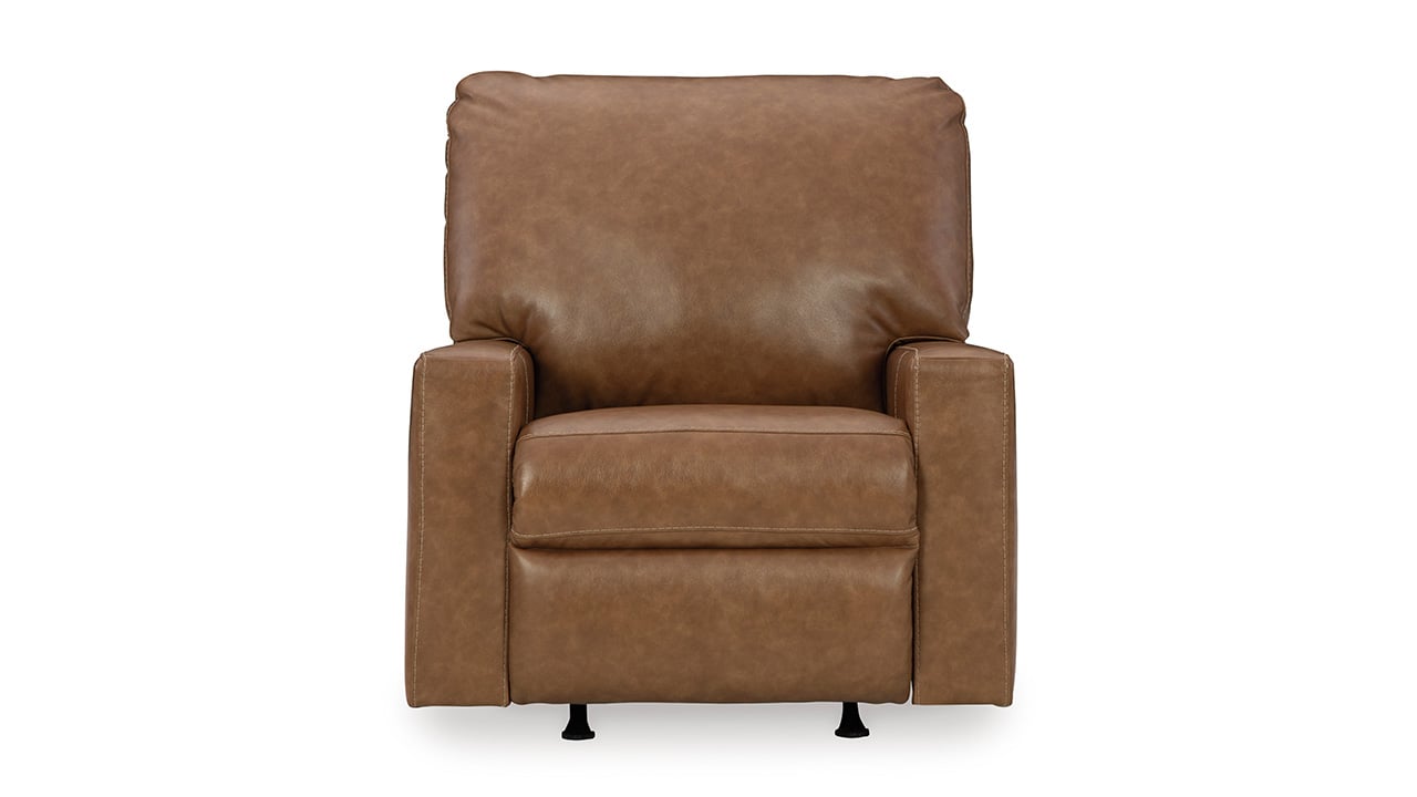 The Bolsena Leather 3-Piece Sofa Set in Caramel Brown delivers warm, inviting comfort with a unified, refined aesthetic. The sofa, loveseat, and rocker recliner are crafted in a luxurious blend of top grain leather and matched faux leather, enriched by a two-tone sauvage effect that enhances the richness and depth of the caramel tone across the entire set.