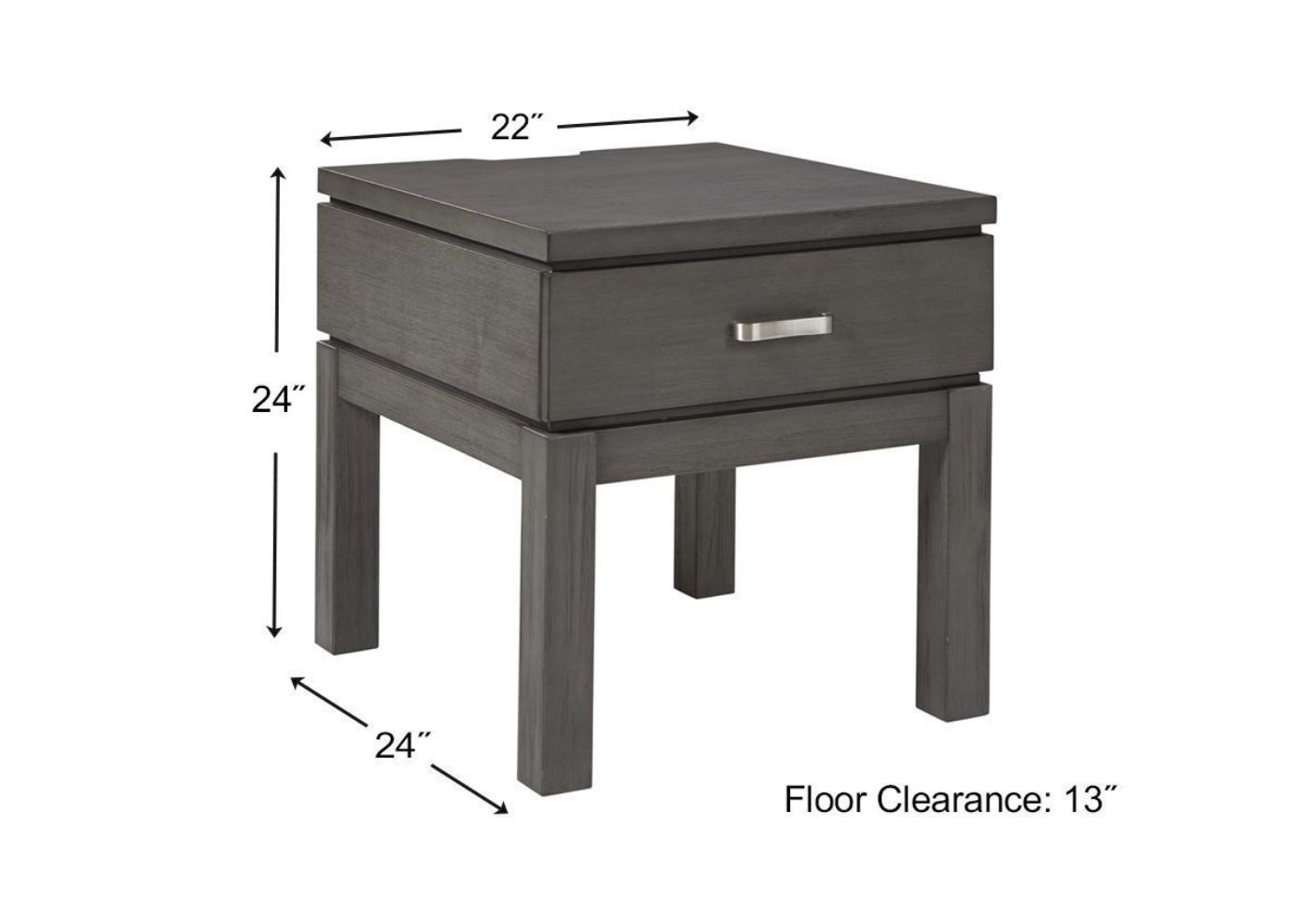 Caitbrook End Table by Ashley Furniture. Weathered Gray Finish. USB Charging Ports. Storage Drawer.