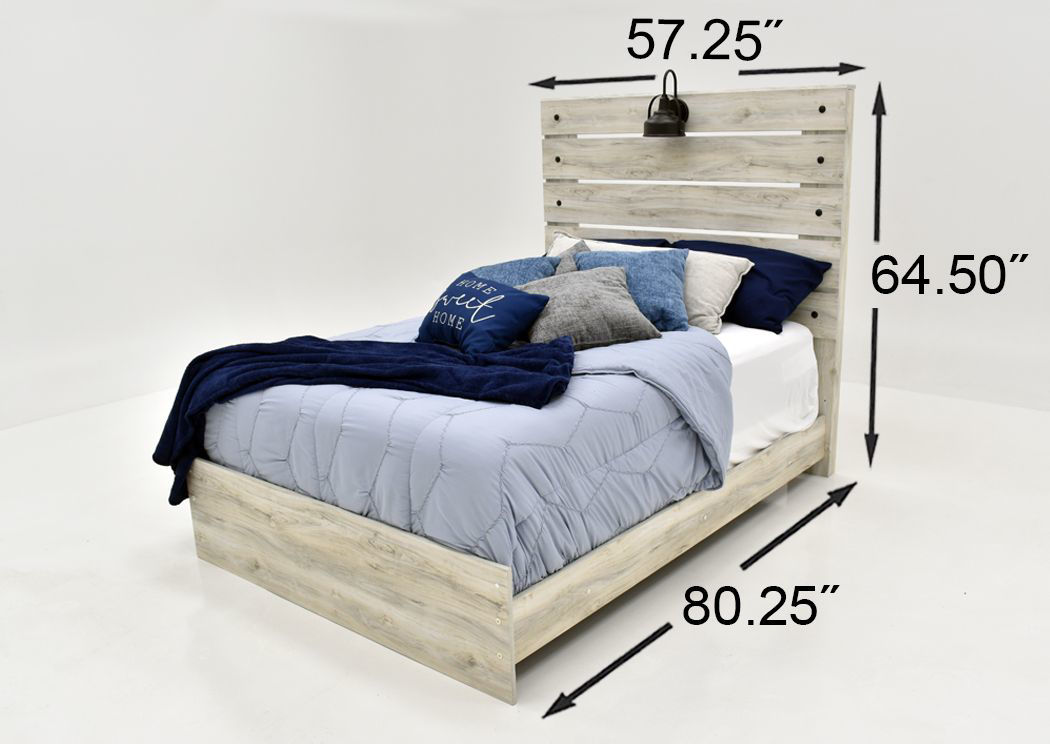 A fresh and clean design will brighten any bedroom, including a children’s bedroom or a guest bedroom. The Cambeck Full Size Bedroom Set from Signature Design by Ashley will give your bedroom a beautiful new look, with clean lines and subtle design features, that will satisfy just about any taste. The wispy white finish over a replicated oak grain adds a unique touch to the Cambeck Bedroom Set. The full size bed has a decorative black matte sconce lamp and the slatted panel headboard is accented with similar black matte pegs. The dresser with mirror has matching large scale black matte handles and 6 spacious storage drawers. The nightstand has 2 drawers, black matte handles and dual USB chargers located on the back. The drawers on the Cambeck Collection are lined with a faux linen laminate for a clean, finished look.