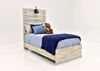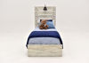 The Cambeck Twin Size Bed has a fresh and clean design that will brighten any bedroom whether it’s a children’s bedroom or a guest bedroom. The wispy white finish over a replicated oak grain adds a unique touch to the Cambeck Collection. This twin size panel style and slatted headboard has a decorative black matte sconce lamp and is accented with similar black matte pegs.