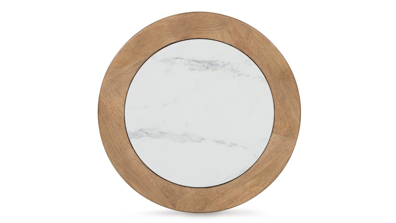 The Camdill End Table effortlessly combines elegance with earthy charm, making it the perfect addition to any contemporary living space. The striking faux marble top pairs seamlessly with a reeded base, offering a fresh, trend-forward twist on everyday functionality. Whether you’re looking for a spot to rest your remotes, a drink, or display small decorative accents, this table provides both style and practicality. Crafted with durable hardwood solids, decorative melamine laminate, and MDF substrate, it ensures lasting beauty. The light glazed wood-tone finish enhances its versatility, while the MEGA-TUFF® melamine surfaces are heat-, scratch-, water-, and stain-resistant, making it easy to clean and maintain.