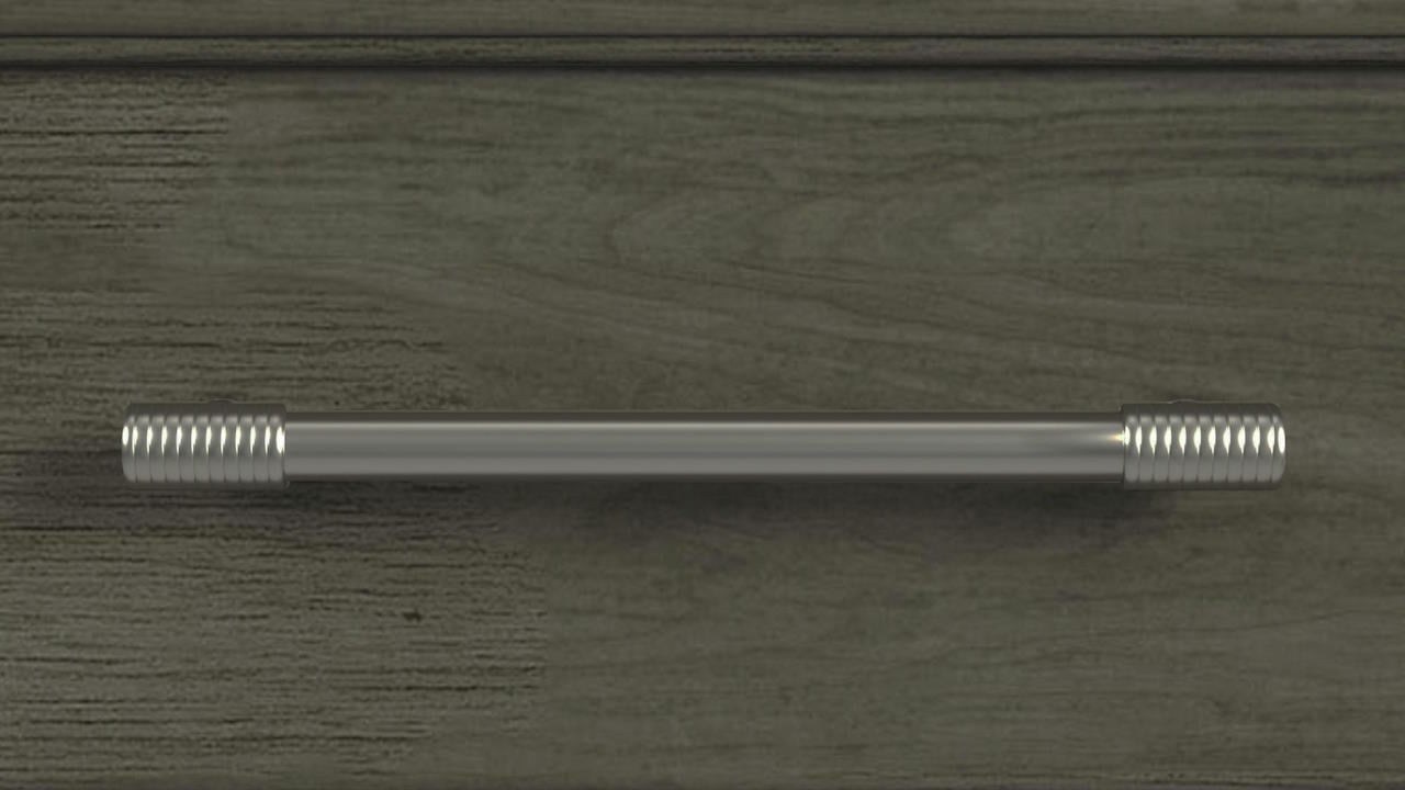 The Canterbury Chest in Gray is a tall, elegant piece of furniture featuring five spacious drawers with sleek brushed metal handles, standing on four short legs for stability and a timeless aesthetic.