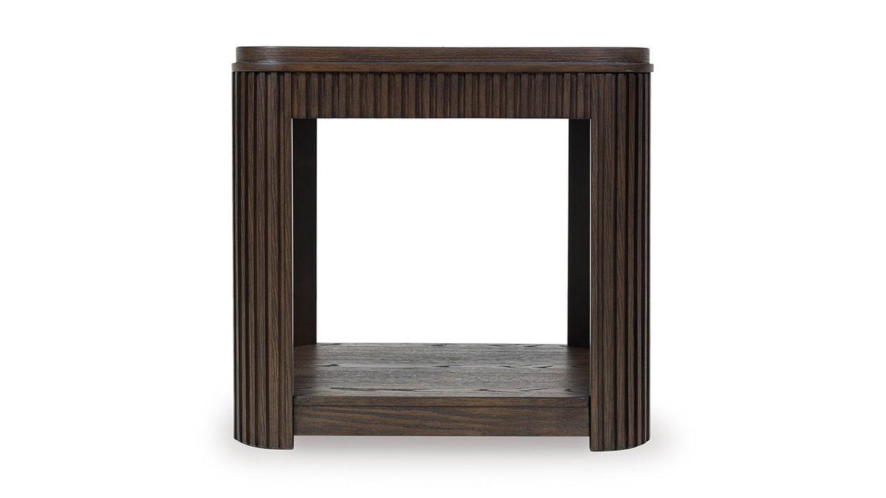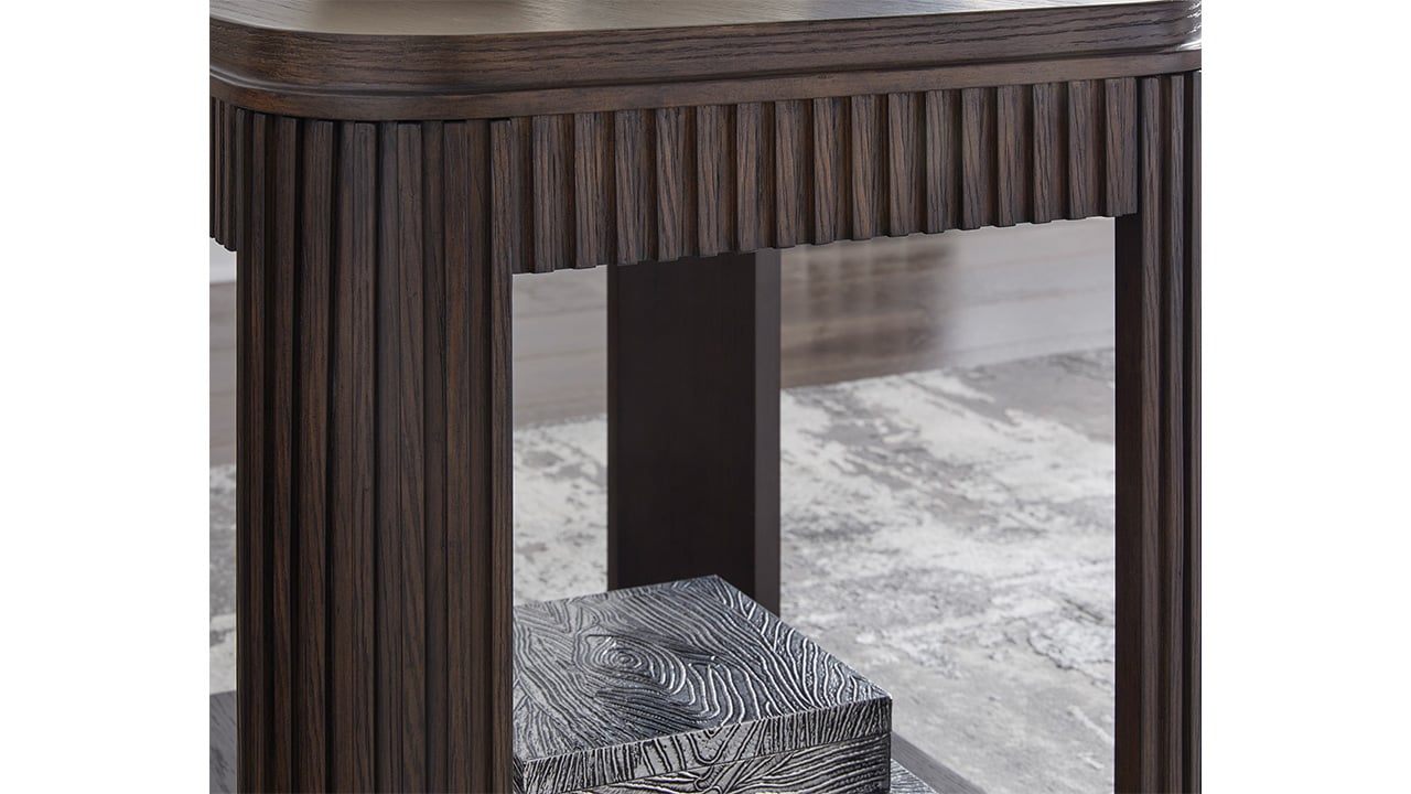 Cool, contemporary flair meets everyday versatility in the Carlibrie lift-top coffee table. Clean lines and fluted details give it a modern edge, while the warm brown finish adds an inviting touch. Designed to adapt to your lifestyle, it easily transforms into a casual workspace or dining surface—effortless style with function built right in.