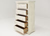 Sleep like royalty with the Chalet Bedroom Collection by Vintage Furniture. This rustic and grand chest of drawers has solid wood construction and a white finish. 5 spacious drawers provide tons of storage. The Chalet Collection will make a beautiful addition to any bedroom.