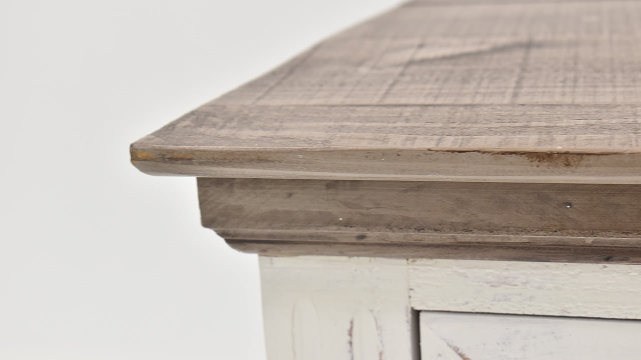 Solid Wood Construction. Rustic White Finish with Gray Top. 2 Drawers and Enclosed Storage Spaces For Any Room in Your Home.