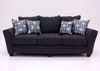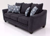 The Dante Sofa by Peak Furniture. This trendy American Made sofa features a beautiful midnight blue microfiber-polyester upholstery accented with welt trim. Comfortable seating and loose pillow back design. Other features include block style feet and elegant accent pillows to complete the look!