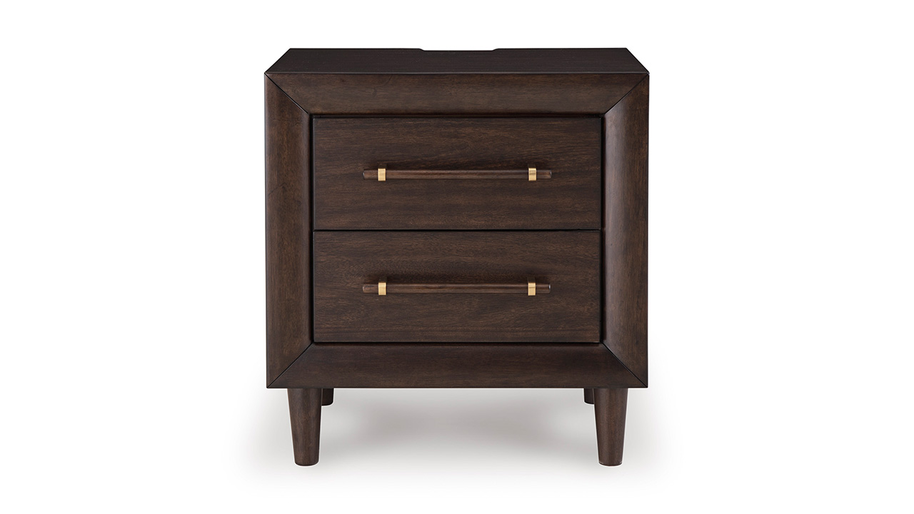 Complete your bedside with the stylish functionality of the Dantenton Nightstand. Its deep merlot finish and elongated wooden pulls deliver a sophisticated look, while integrated USB charging keeps everyday essentials powered and within reach. With clean lines and mid-century-inspired legs, this nightstand blends modern convenience with timeless design.
