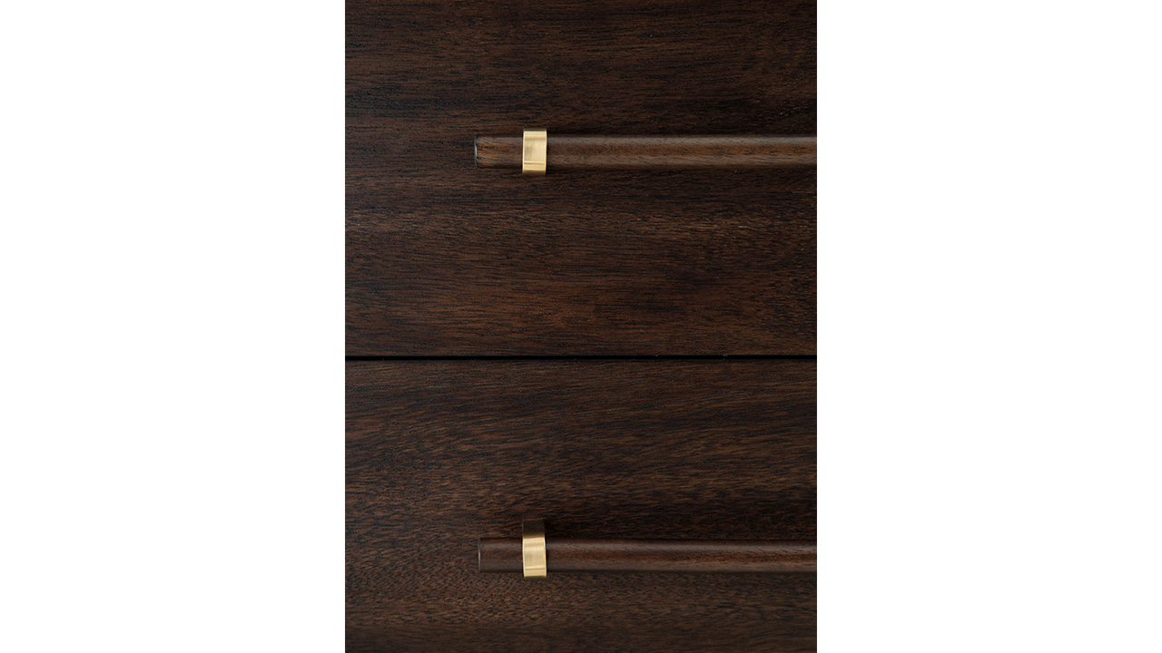 Bring stylish storage to your bedroom with the Dantenton Chest. Designed with a rich merlot finish and elongated wooden pulls, this piece balances sleek contemporary lines with mid-century inspiration. Five spacious drawers provide practical organization while maintaining the collection’s refined, metropolitan appeal.