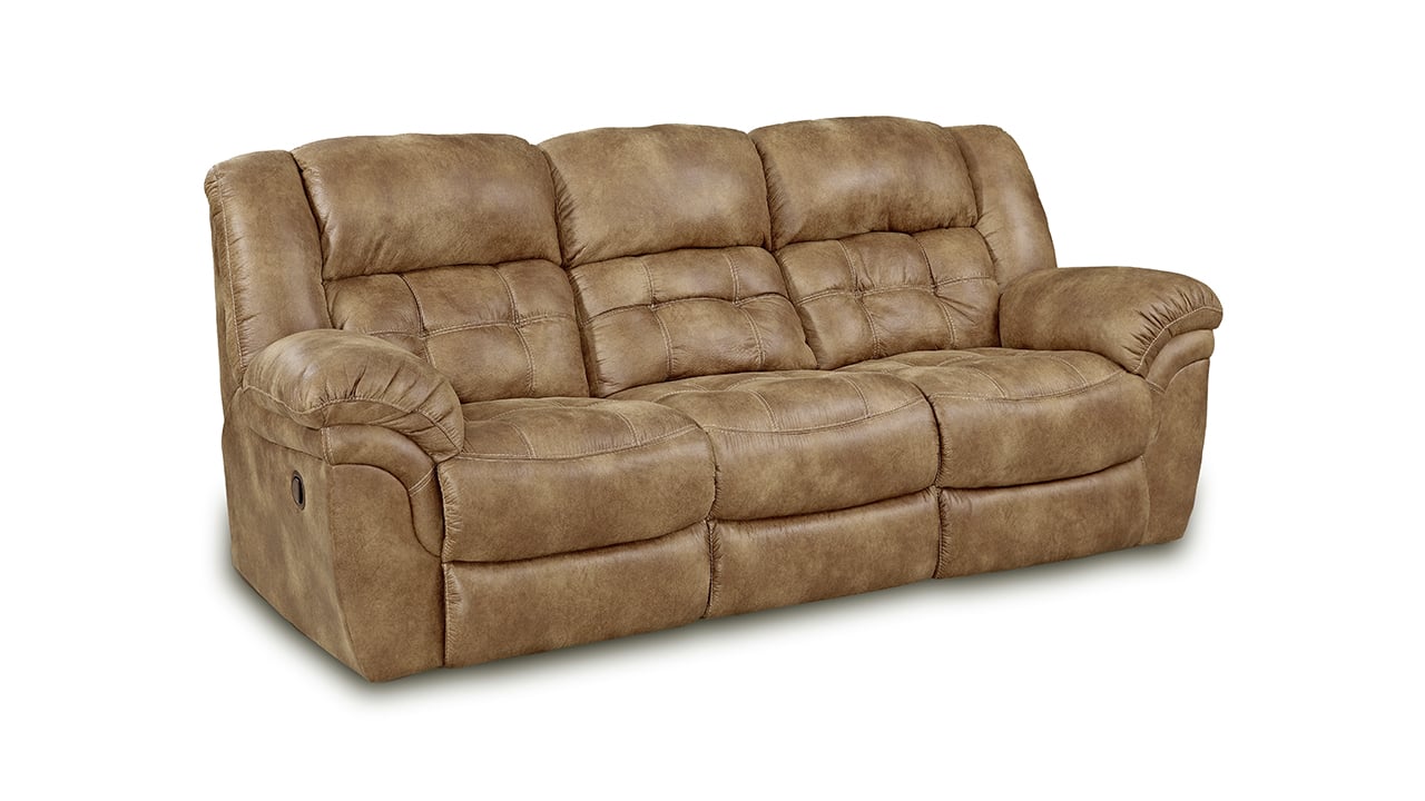 Lose yourself in easy, laid-back comfort with this inviting reclining sofa. Wrapped in durable, stain-resistant brown upholstery, it offers a smooth, effortless way to unwind. Dual recliners and plush cushioning come together to create a cozy retreat that fits beautifully into your everyday rhythm.