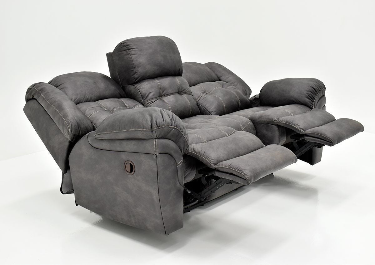 Denton Reclining Sofa by HomeStretch. Gray Upholstery. Durable and Stain Resistant. Dual Recliners. Ultra Comfort.