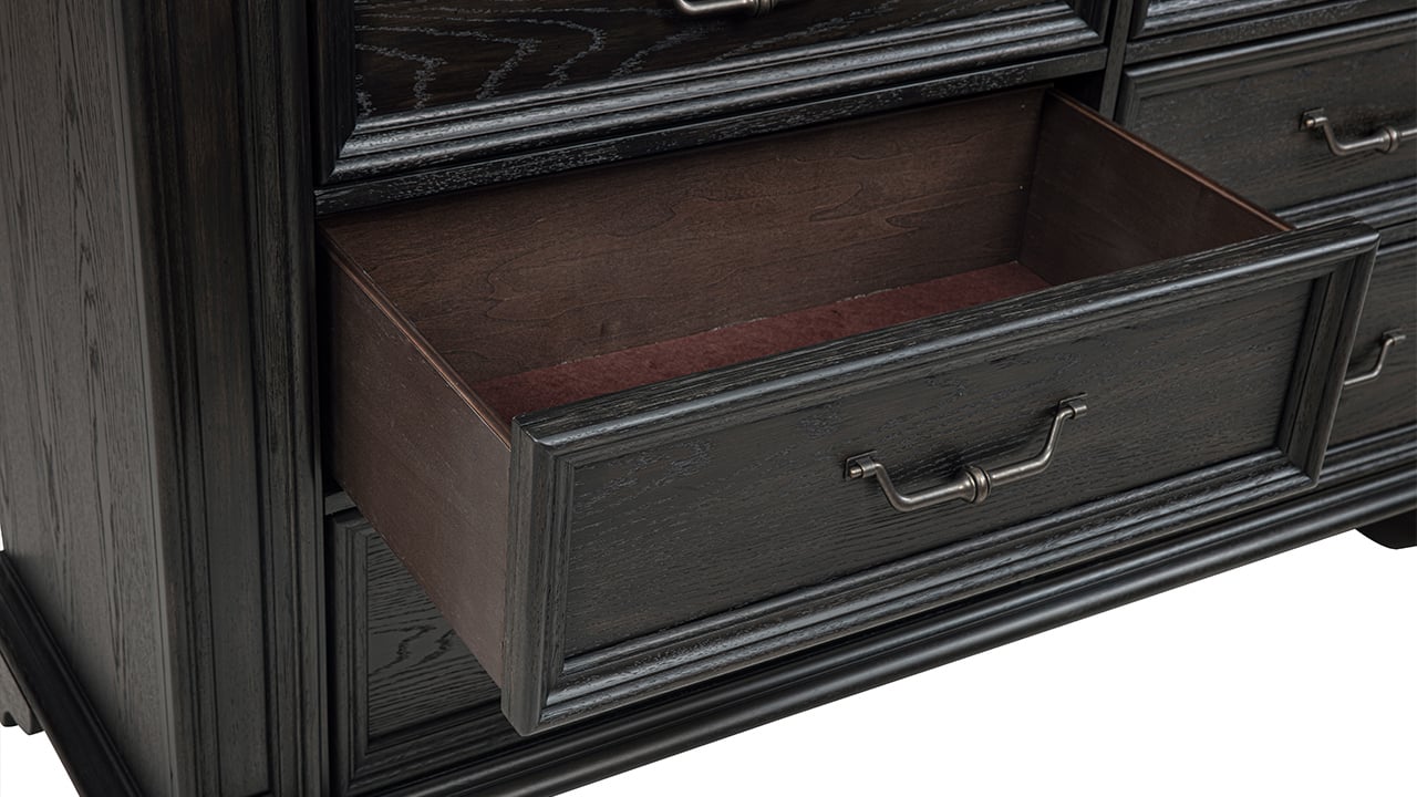 Elevate your storage with the timeless appeal of the Dresden Chest. Finished in a rich dark brown English oak, this traditionally styled piece brings warmth and refinement to your bedroom. Expert craftsmanship and smooth-gliding drawers make it as functional as it is elegant.