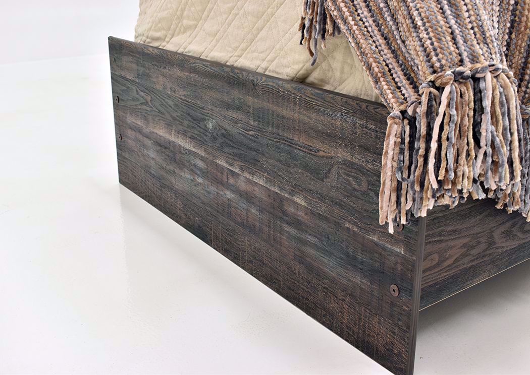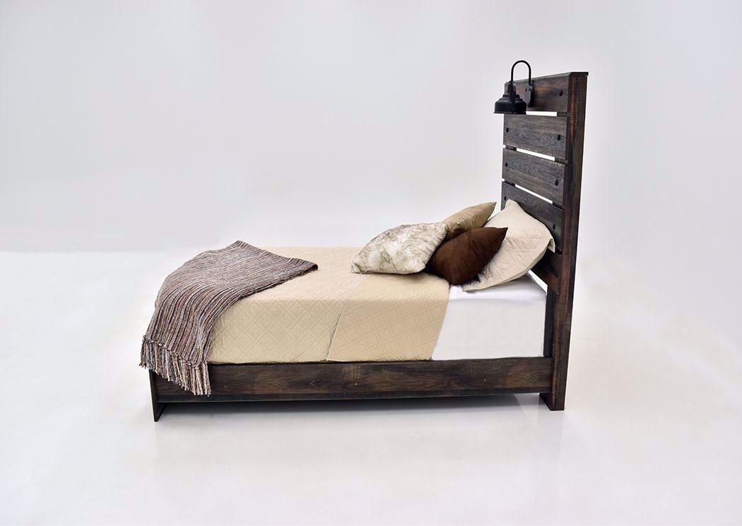 The Drystan Twin Size Bed has a trendy and stylish design that will complete any bedroom whether it’s a children’s bedroom or a guest bedroom. The rustic barn wood brown finish over a replicated oak grain adds a unique touch to the Drystan bed. This twin size slatted headboard has one decorative black matte sconce lamp and is accented with similar black matte pegs.