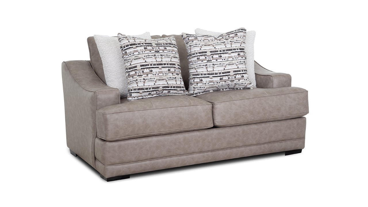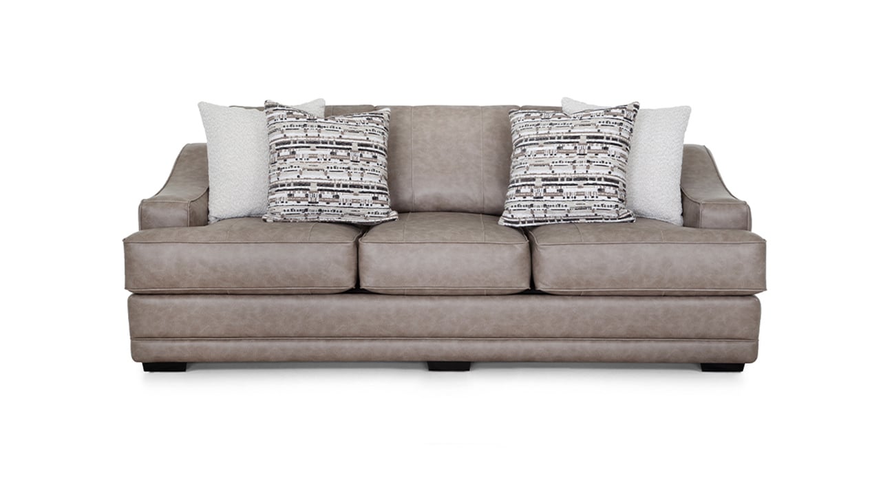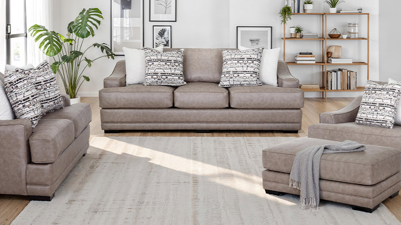 The Duvall 3-Piece Sofa Set in natural combines luxury, comfort, and timeless style. Featuring a sofa, loveseat, and chair, each piece is wrapped in soft, leather-like fabric with deep, overstuffed cushions, padded inset slope arms with mini piecrust welting, and coordinating throw pillows. Reversible cushions and the WOW Gel-Blended Seating System ensure lasting comfort and support.