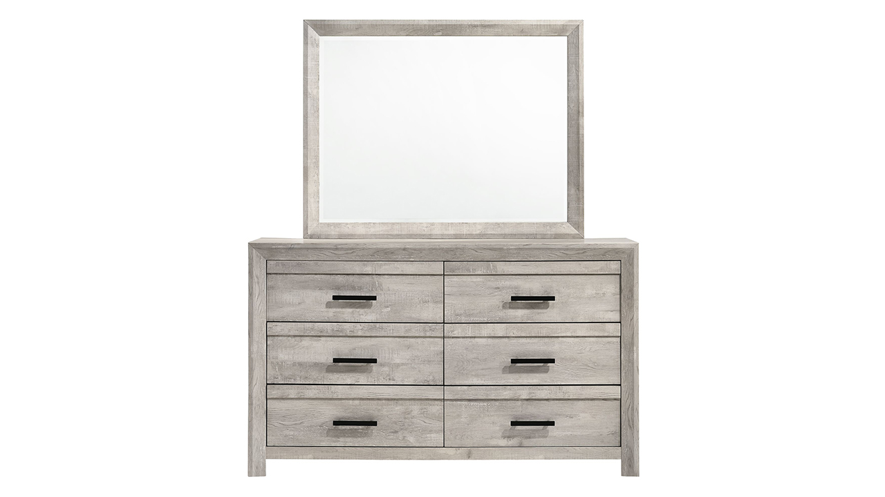 The Eleanor Dresser with Mirror in white brings a fresh sense of modern elegance to your space. With its sleek finish and stylish black drawer pulls, it’s a chic addition that effortlessly enhances both master suites and guest rooms.