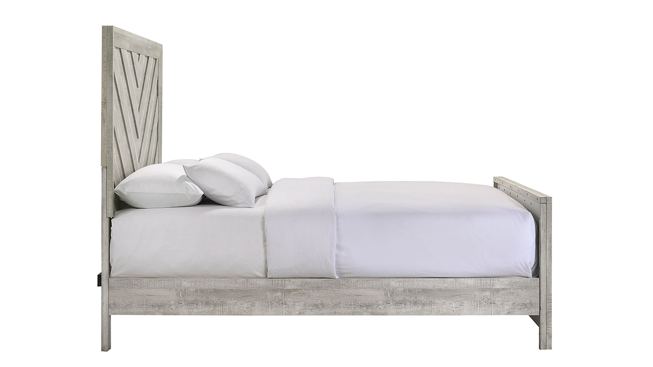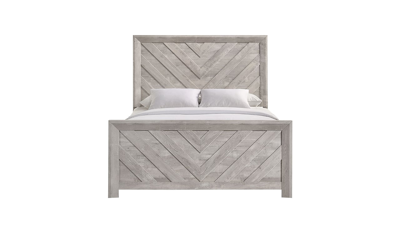 The Eleanor Queen Bed in white adds a modern edge with its clean finish and striking diagonal paneling. Spacious and versatile, it’s a chic centerpiece for master suites or stylish guest rooms.