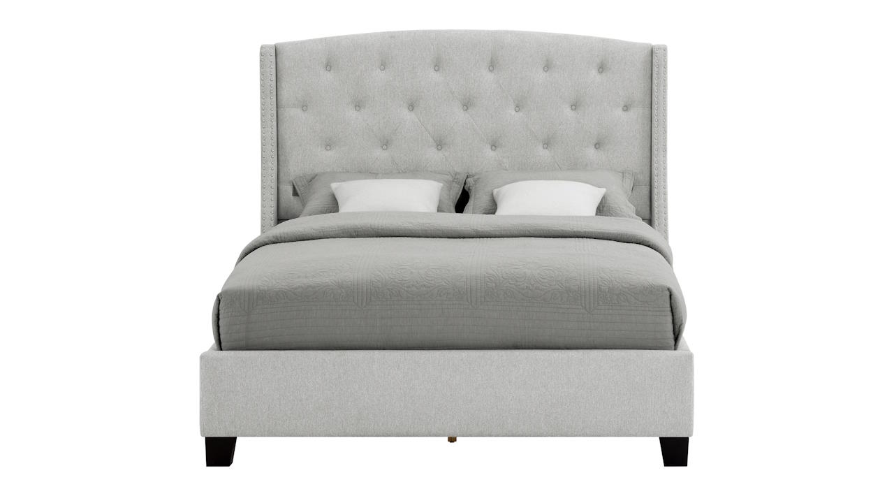 Eva Queen Size Bed by Crown Mark. Dove Gray with Button Tufting and Nailhead Accents.