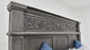 Terra Gray Queen Size Panel Bed. Solid Wood Construction. Detailed Designs Carved on Headboard.