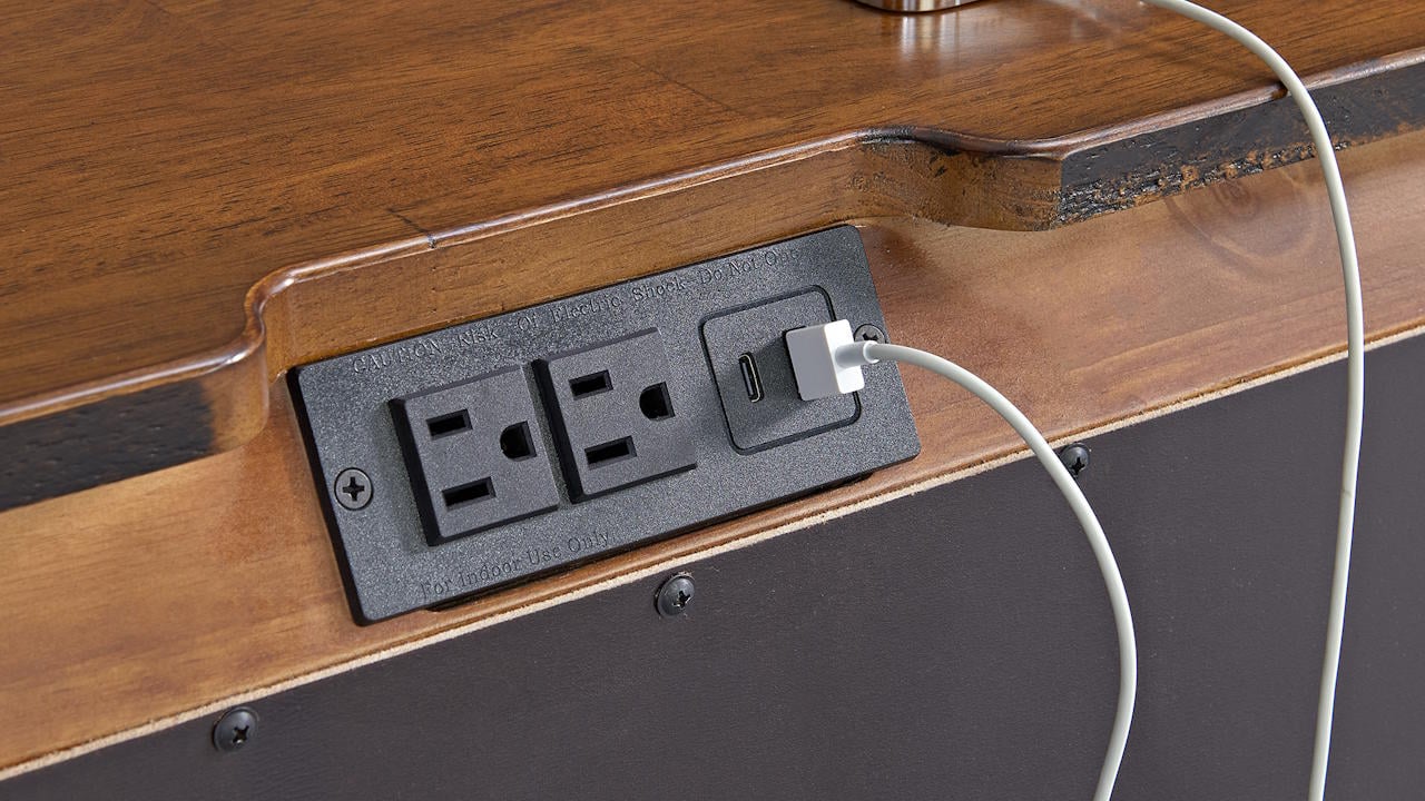 The Gage 3-Drawer Nightstand in Chestnut combines timeless style and modern convenience with dovetailed drawers, a hidden power strip, and a warm, traditional finish.