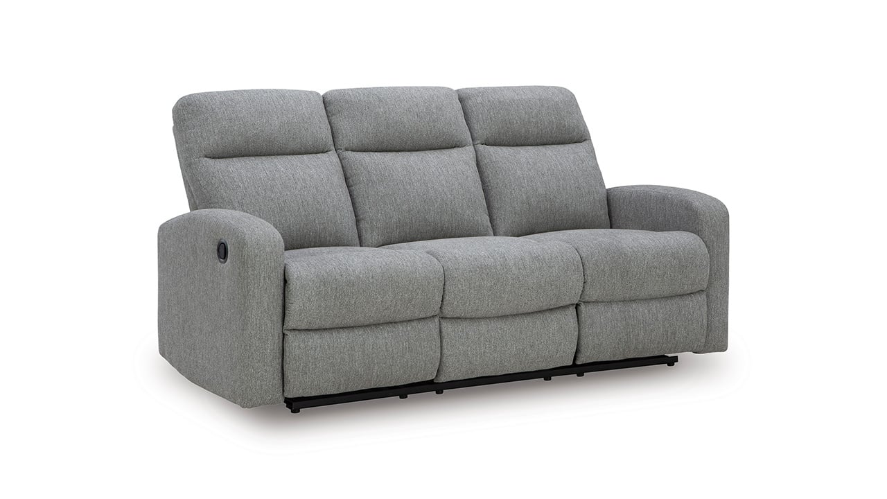 Experience laid-back comfort with the Gauntlet Reclining Sofa in sterling gray. Designed for everyday ease, its clean, classic silhouette pairs effortlessly with the cool neutral tone, making it a seamless fit for your living space. Smooth reclining invites you to sit back and unwind in style.