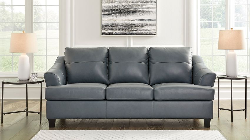 Catering to your fashionable and relaxed lifestyle, the Genoa Leather Sofa in Gray by Ashley is a handsome marriage of masculine and feminine sensibilities. Soft-to-the-touch leather match upholstery, with an enhanced tone-on-tone look, levels up the affordable luxury. Whether you’re hosting guests or enjoying a night in, this piece makes a chic statement. Sophistication has never been more gorgeous.