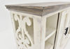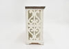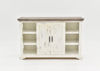 Whether used in an office or entry way, the den or dining room, you will love the spacious storage offered by the Harp Buffet Storage Cabinet by Vintage Furniture. This cabinet is crafted from solid wood with a cottage chic style. Finishes include the detailed base and storage area in an antique white and the buffet top in a natural rustic. Wrought iron hardware adds to the overall appeal.