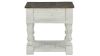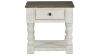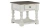 Off White and Weathered Gray Square End Table by Ashley Furniture. Antiqued Hardware. One Drawer with Open Lower Shelf.