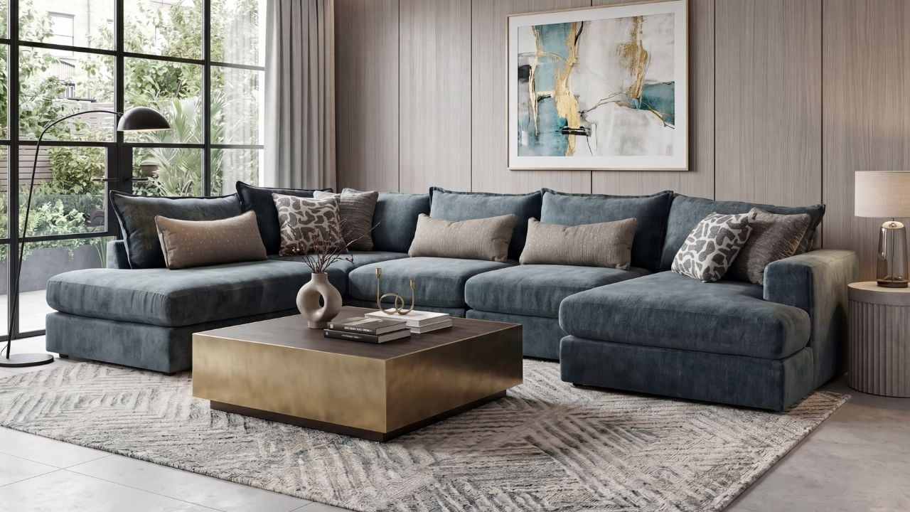Bring a modern, grounded look to your space with the Hogan 5-piece sectional in steel. Its rich, versatile tone adds depth while plush seating and generous proportions invite you to stretch out and relax. Built with performance fabric and thoughtful details, this sectional delivers both comfort and lasting style for everyday living.