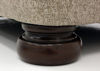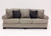 Offer a welcoming space for friends and family to gather with the Kananwood Sofa. The plush, durable, and stain resistant microfiber-polyester upholstery has rich hues of light brown and tan. The attached pillow backs and seat cushions are made with high-resiliency foam and are finished with welt trim accents. Additional features include reversible seat cushions, rolled arms and wood inspired bun style feet. Five accent pillows are included - 2 pillows are covered with a beautiful dark brown fabric and 3, including a lumbar pillow, are covered in a fabulous motif diamond pattern with rich hues of browns, grays, and golds.