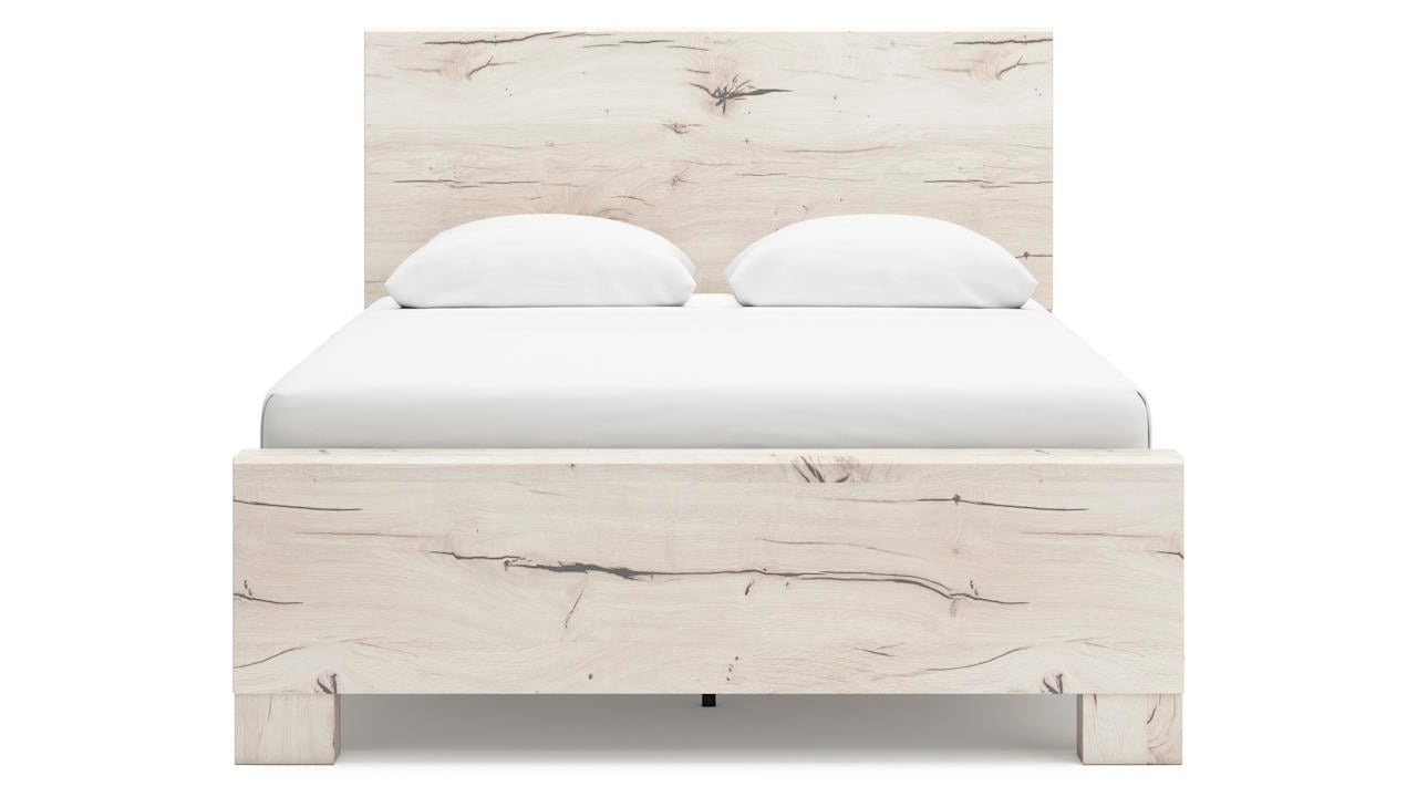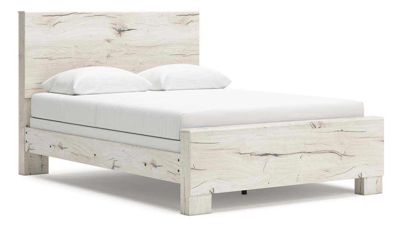 The Lawroy Full Panel Bed in Off White blends farmhouse charm and contemporary style with its rustic white finish and replicated reclaimed oak grain, transforming your bedroom into a serene sanctuary.