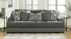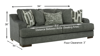 Lessinger Sofa by Ashley Furniture. Pewter Gray Upholstery with Irresistible Plush Cushions. Accent Pillows Included.