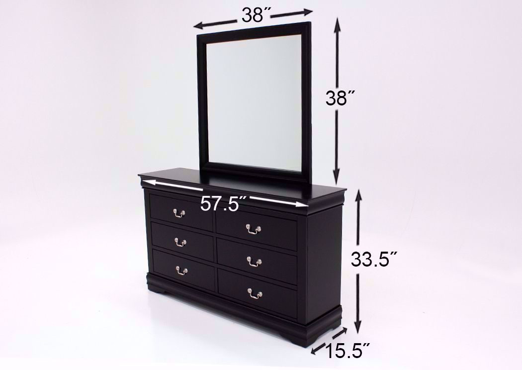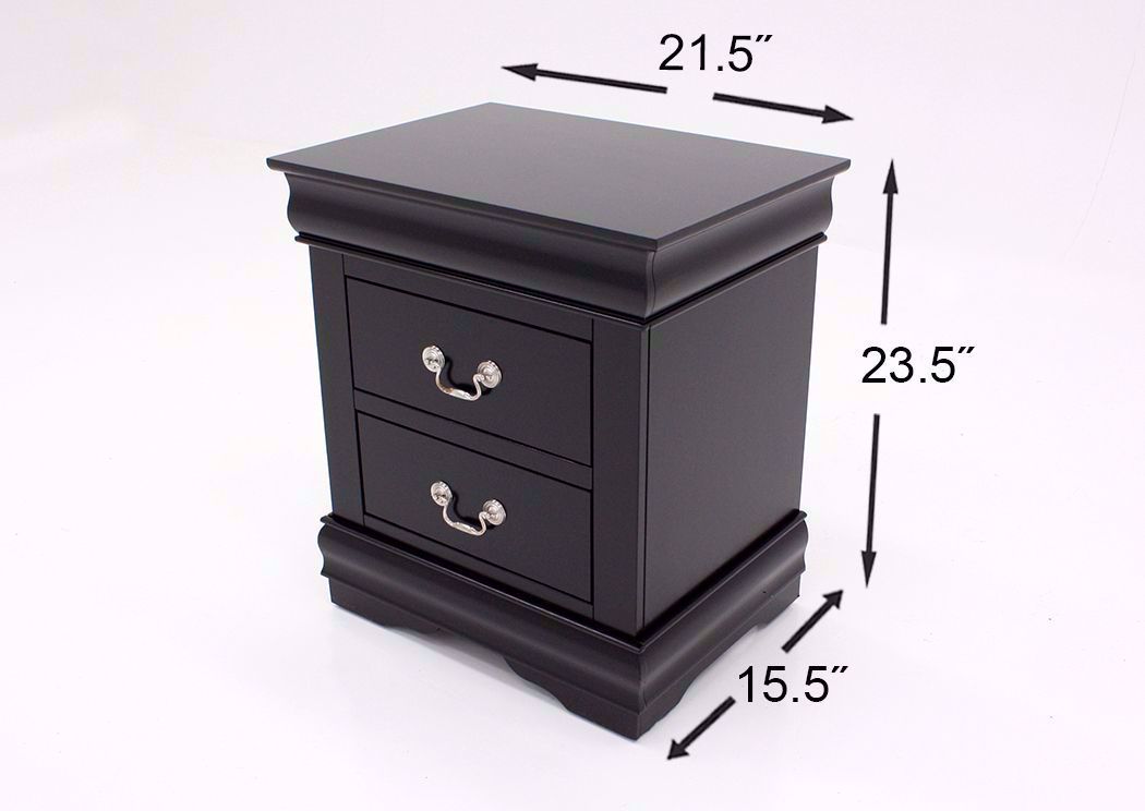 The traditionally styled Louis Philippe Queen Size Bedroom Set has a formal look and feel. This bedroom set features a number of bedroom storage pieces as well as a beautiful sleigh bed that will easily outfit your bedroom space. Offering both style and storage. Each piece is detailed in a black finish and select pieces have drawers for storage. Included in the Louis Philippe Queen Size Bedroom Set price are a queen headboard, footboard, rails, dresser with mirror and one nightstand. Mattress and foundation/box spring sold separately.Key Features