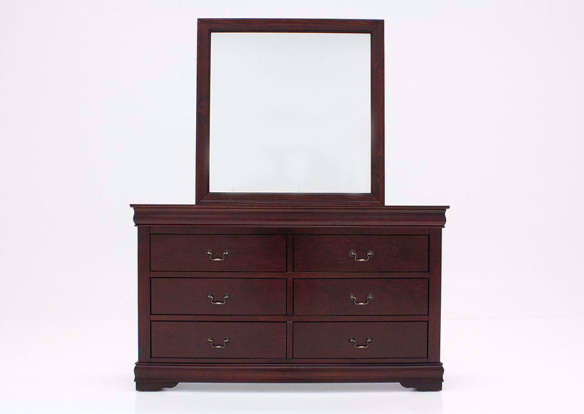 Louis Philippe Queen Size Bedroom Set by Crown Mark. Cherry Brown Finish. Traditional Sleigh Bed. Includes Bed, Dresser with Mirror and Nightstand.
