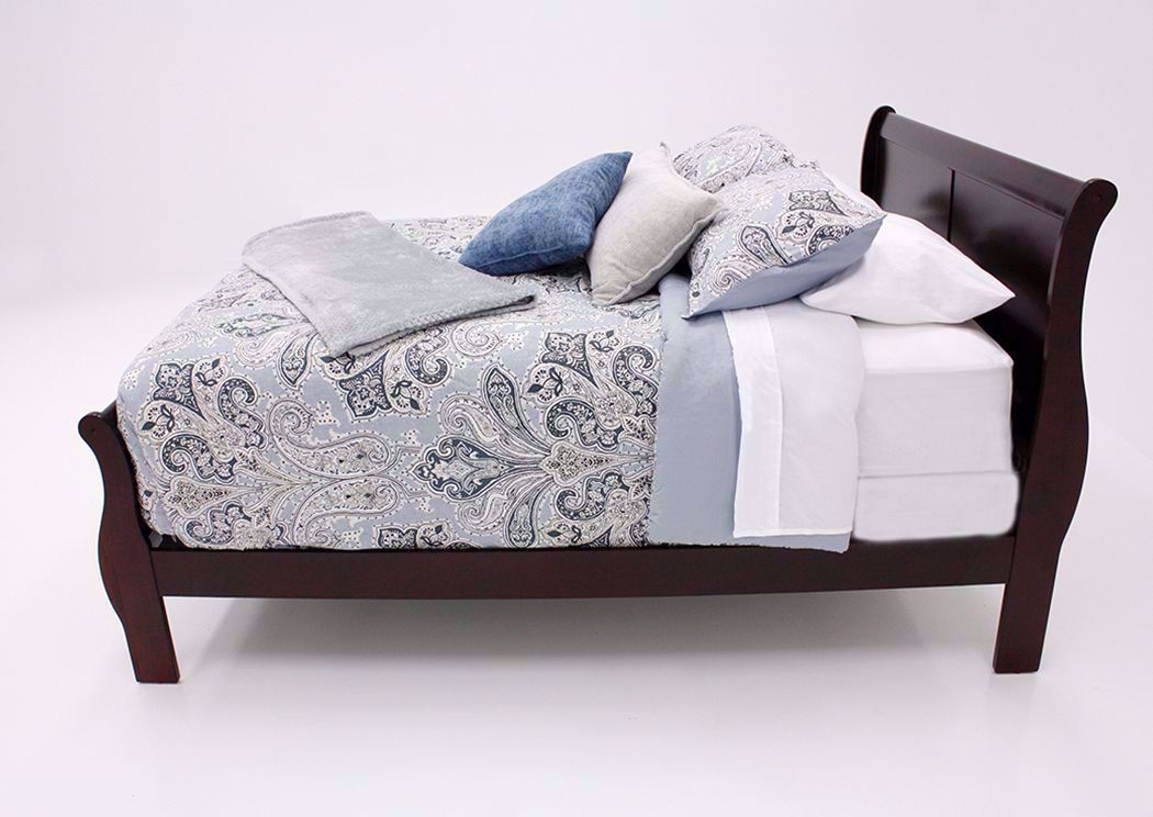 The Louis Philippe Full Size Bed is made of quality wood solids and veneers. Shapely curves and classic styling. The beautiful sleigh style headboard and footboard have a cherry brown finish. Louis Philippe Full Size Bed price includes full size headboard, footboard and rails.