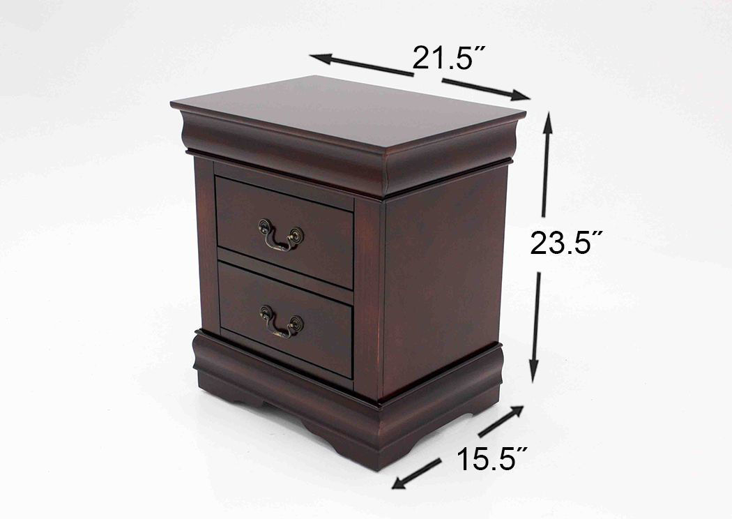 The traditionally styled Louis Philippe King Size Bedroom Set has a formal look and feel. This bedroom set features a number of bedroom storage pieces as well as a beautiful sleigh bed that will easily outfit your bedroom space. Offering both style and storage. Each piece is detailed in a cherry brown finish and select pieces have drawers for storage. Included in the Louis Philippe King Size Bedroom Set price are a King headboard, footboard, rails, dresser with mirror and one nightstand.