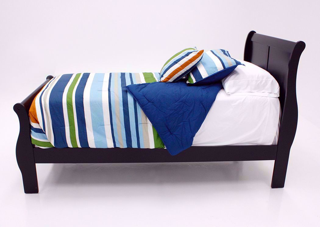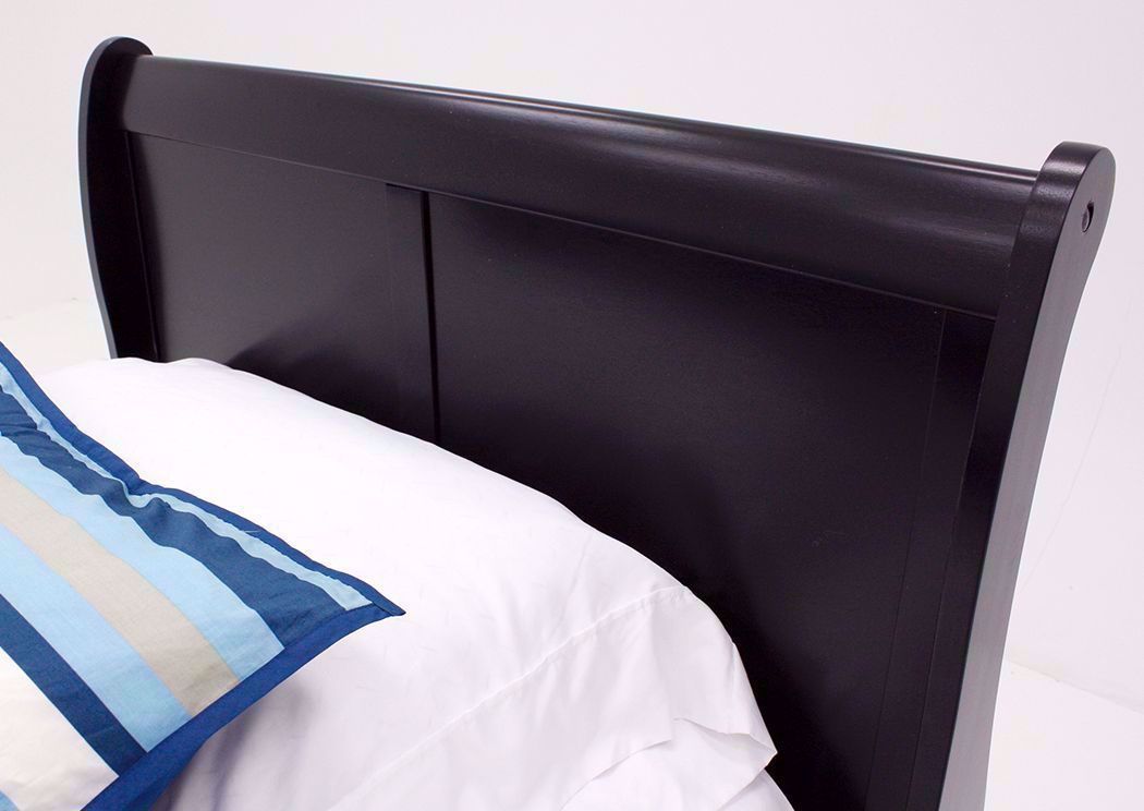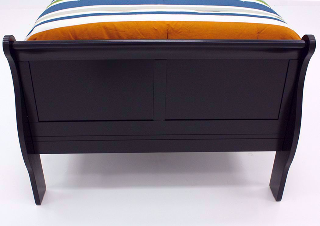 The Louis Philippe Twin Size Bed is made of quality wood solids and veneers. Shapley curves and classic styling. The beautiful sleigh style headboard and footboard have a black finish. Louis Philippe Twin Size Bed price includes twin size headboard, footboard and rails.