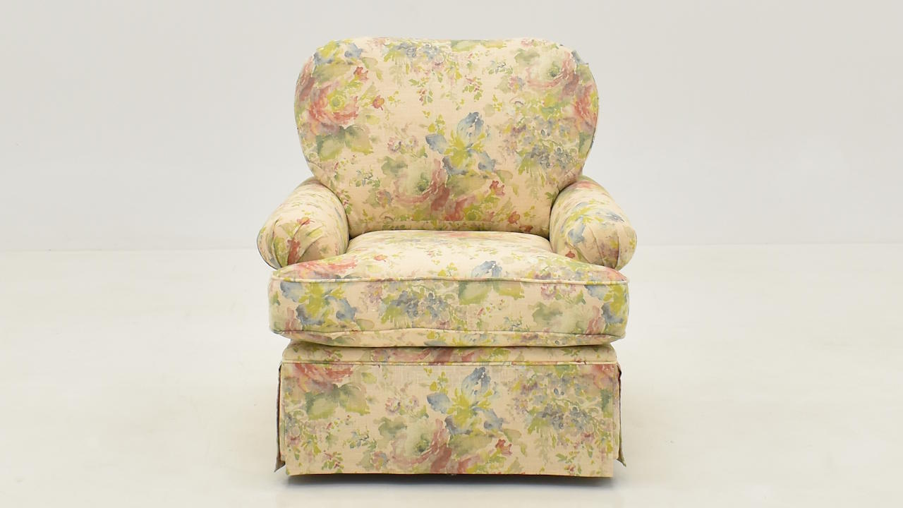 • Soft floral upholstery with a watercolor-style pattern