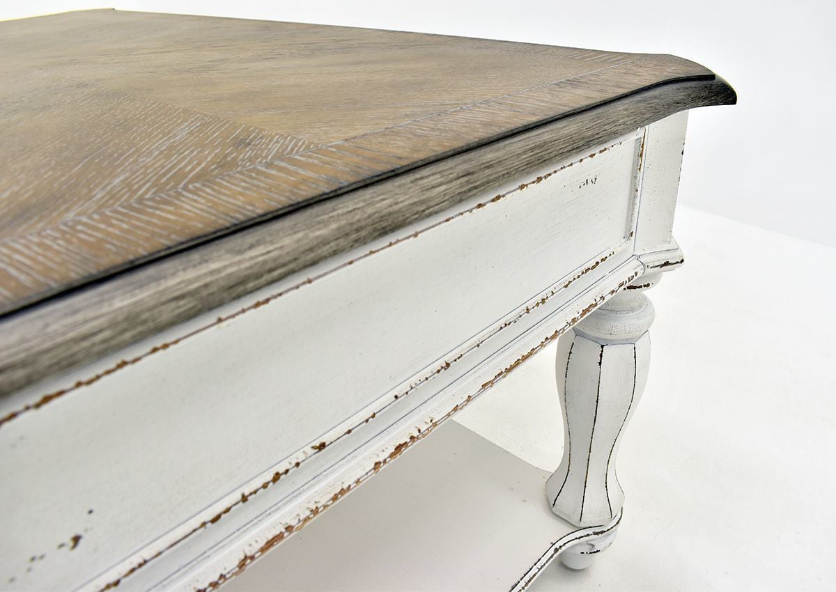 Magnolia Manor Coffee Table by Liberty. Rectangle. Rustic Antique White Finish. Traditional Style.