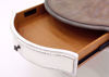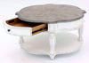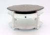 The elegant Magnolia Manor Round Coffee Table by Liberty Furniture adds exquisite style to any traditional home or office. Featuring a fully finished dovetail drawer with metal side glides and a bottom shelf for extended storage, the table showcases a round top with elegant accents and tall turned legs. Completed with an antique white finish and bottom casters, this table will easily and instantly transform your living room setting.