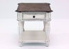 Highlighted by vintage and rustic style accents, the beautiful Magnolia Manor End Table by Liberty Furniture adds an accommodating design to your living space. Featuring one fully finished dovetail drawer with metal full extension glides, this piece also includes a bottom shelf for more easy access storage. Completed with antique brass knob and bail hardware with an antique white finish, this piece presents formal elegance for your home or office.