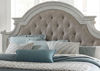 Magnolia Manor Queen Size Upholstered Bed by Liberty Furniture. Distressed White Finish. French Country Charm.