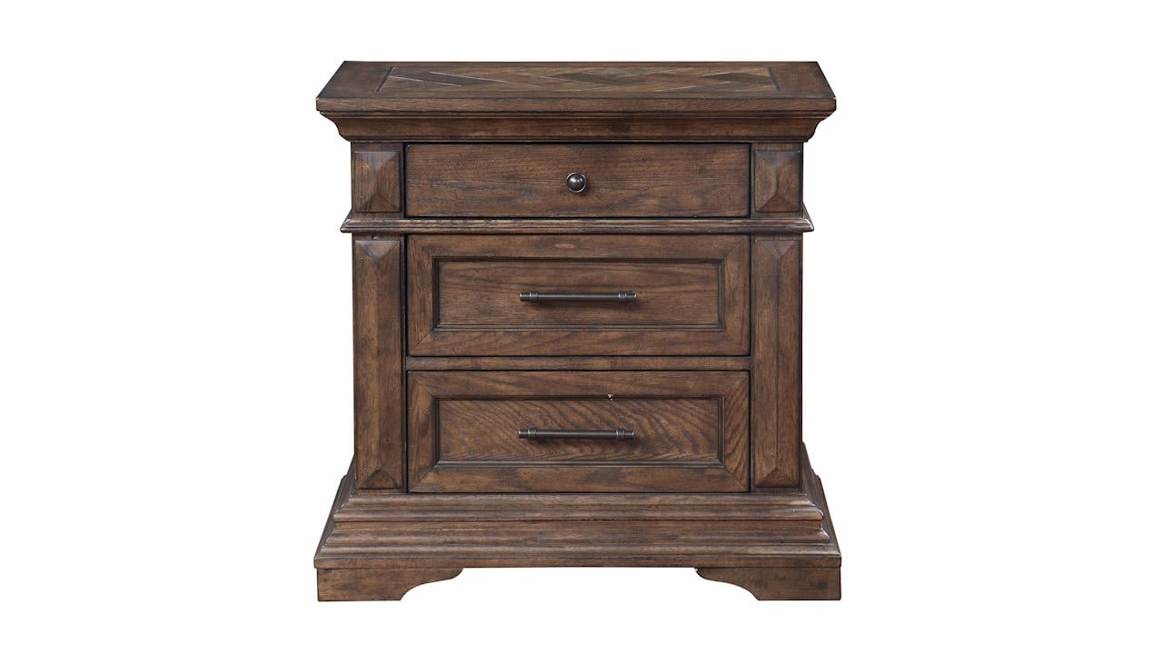 Discover the Mar Vista Nightstand at Home Furniture: a durable, stylish piece crafted from rubberwood solids and oak veneer with a brushed walnut finish, featuring convenient full extension drawer glides, English dovetail drawers, and a finished interior for added functionality, making it the ideal choice to elevate any bedroom.