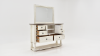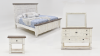 Bring a new look to your bedroom that is bold, beautiful and refreshing. The simplicity of design found in the Martha Queen Size Bedroom Set by Vintage Furniture features a rustic whitewash finish. The whitewash has subtle rub through effects throughout and is accentuated with warm brown tops on the bed, dresser and nightstand. The bold pilaster accents on the headboard add character and dimension to the casual design. Tons of storage options can be found in the 6 drawer dresser with cabinet and the nightstand. You can rest assured that the solid wood construction of the Martha Collection will bring you years of enjoyment and the uncomplicated design will withstand any design trends that come and go. The Martha Queen Size Bedroom Set includes a Bed, Dresser with Mirror and 1 Nightstand.