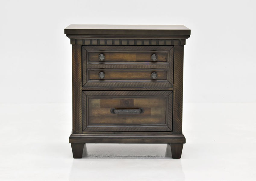 The McCabe Nightstand is beautifully crafted with a dark brown distressed finish, dentil molding, square tapered feet, and raised drawer panels with aged metal knobs and pulls. This nightstand is sophisticated and functional – with 2 spacious drawers, including a hidden drawer on top, storing and accessing personal and valuable items within reach of bed is easy and convenient. Additionally, the top drawer is felt lined. The McCabe Collection is gorgeous and wonderfully functional.