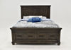 McCabe Queen Size Storage Bed by Elements. Sophisticated Functionality. Distressed Brown Finish. Panel Style with Storage in Footboard.