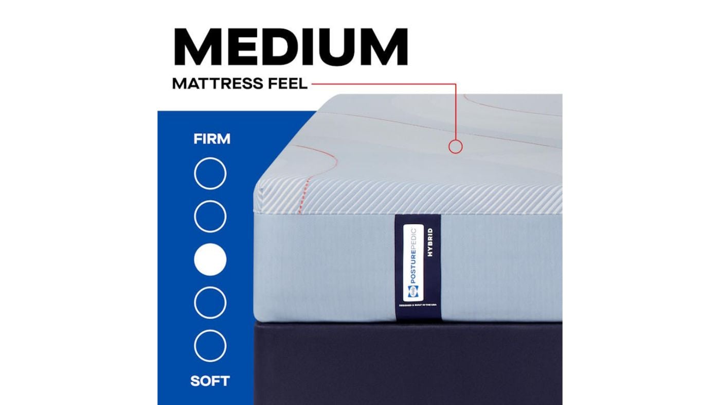 The Sealy Posturepedic® Hybrid Medium King mattress combines lasting comfort and superior support to help maintain natural body alignment and reduce nagging Bed AchesTM. The orthopedic-inspired Posturepedic® Support System features exclusive PrecisionFit™ Coils, arranged right where you need them. Plus the Coil Edge provides a solid surface that’s built to last. The hybrid construction combines these coils with Sealy® memory foam, creating an ideal sleep surface.